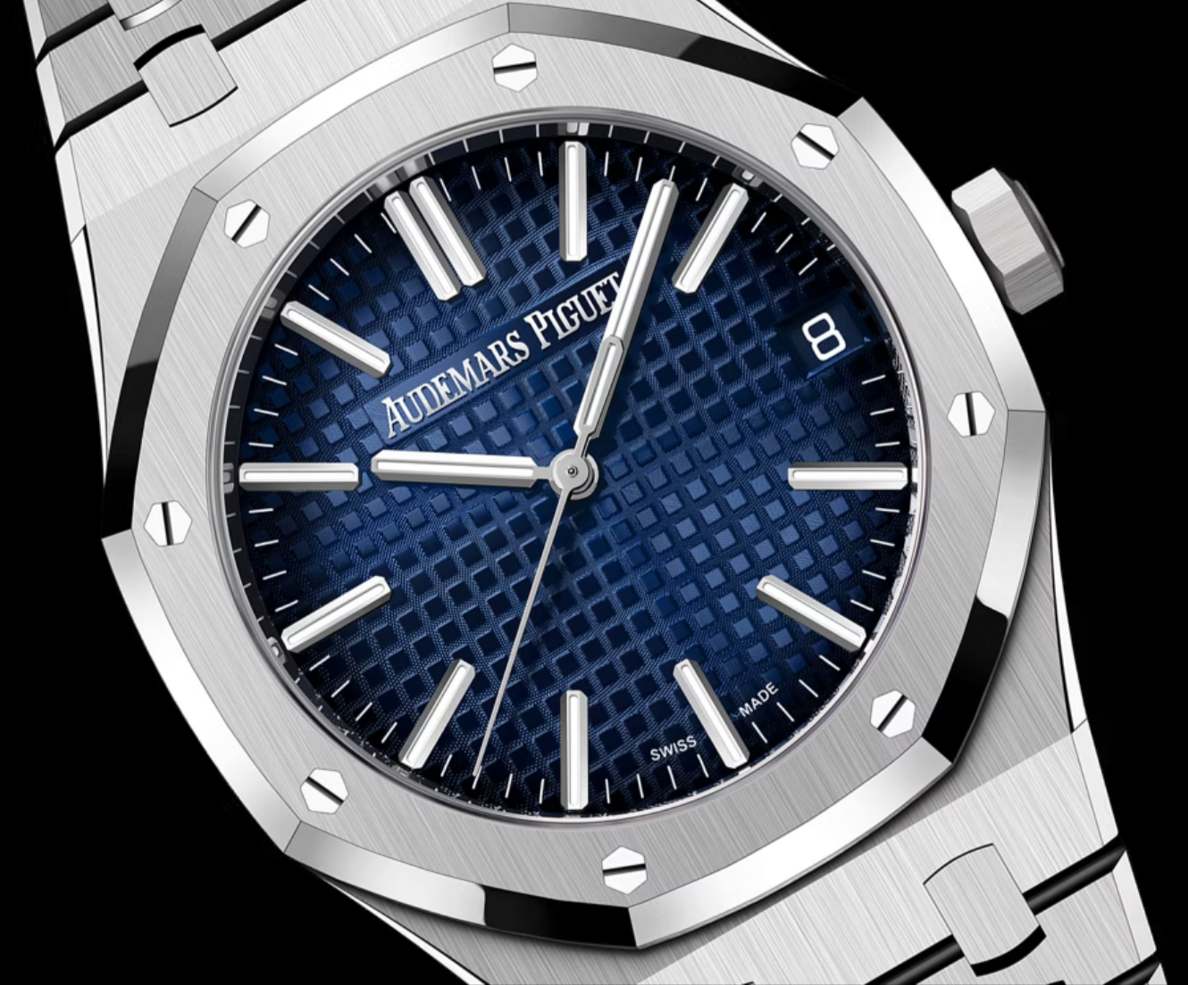 Royal Oak de Audemars Piguet en edición especial deslumbra con su caja en oro blanco de 18 quilates, una pieza que redefine la elegancia atemporal. Su icónica esfera luce un motivo “Grande Tapisserie” en azul ahumado, que aporta profundidad y textura, creando un contraste exquisito con los detalles del dial. Una obra maestra que combina tradición relojera suiza con un diseño contemporáneo imposible de ignorar.